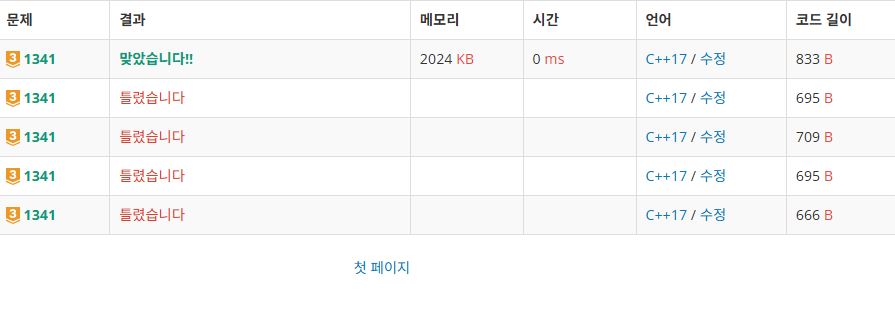 결과는 보기 좋게 틀렸다. 이것으론 예제 입력 2를 통과하지 못한다.